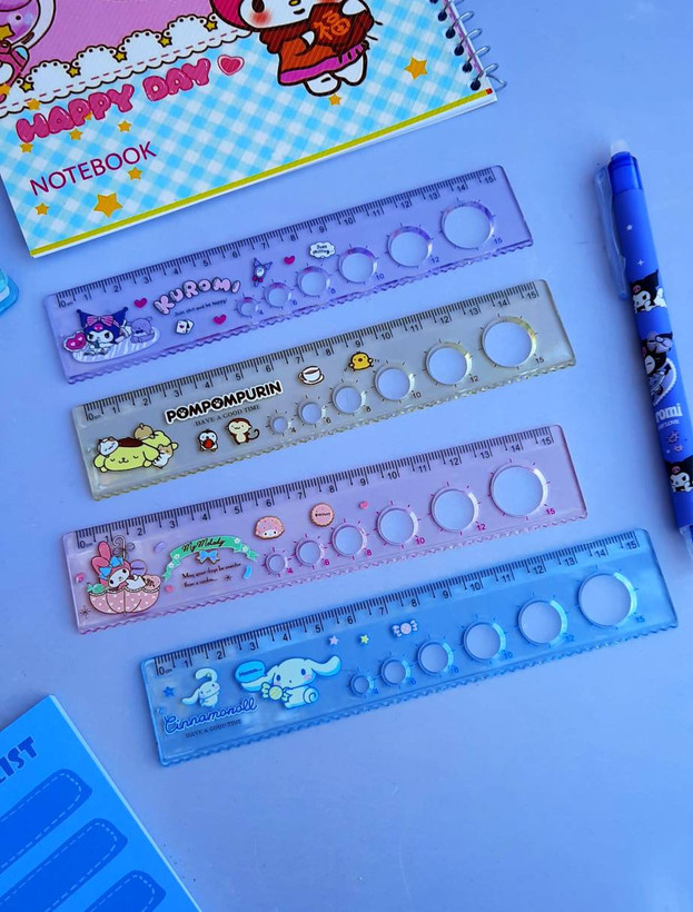 خط کش شابلون دار شیشه ای شفاف ۱۵ سانتی سانریو ( کرومی و دوستان )